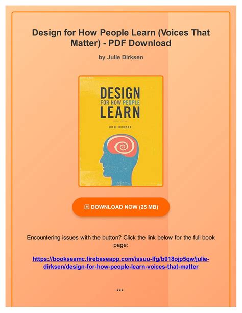 Read Online Design for How People Learn 2nd Edition Voices That Matter Kindle Editon By Click Button. Design for How People Learn 2nd Edition Voices That Matter it’s easy to recommend a new book category such as Novel, journal, comic, magazin, ect. You see it and you just know that the designer is also an author and understands the challenges involved with having a good book. You can easy klick for detailing book and you can read it online, even you can download it